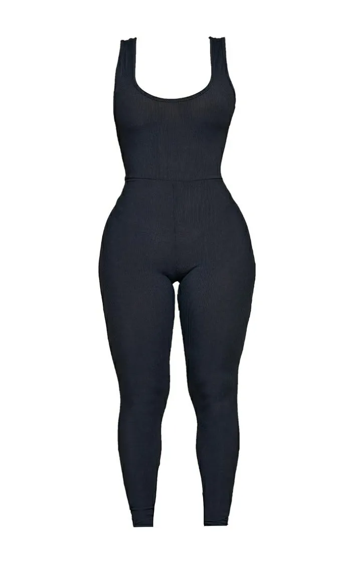 Give your everyday look an edge with this fierce jumpsuit, featuring a black ribbed material, scoop neck and figure flattering fit. For all eyes on you, complete the look with fresh kicks and a pair of statement shades.