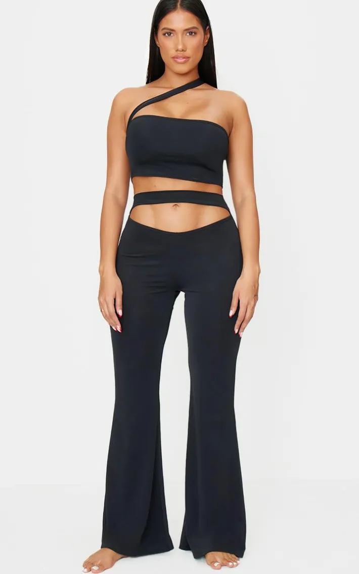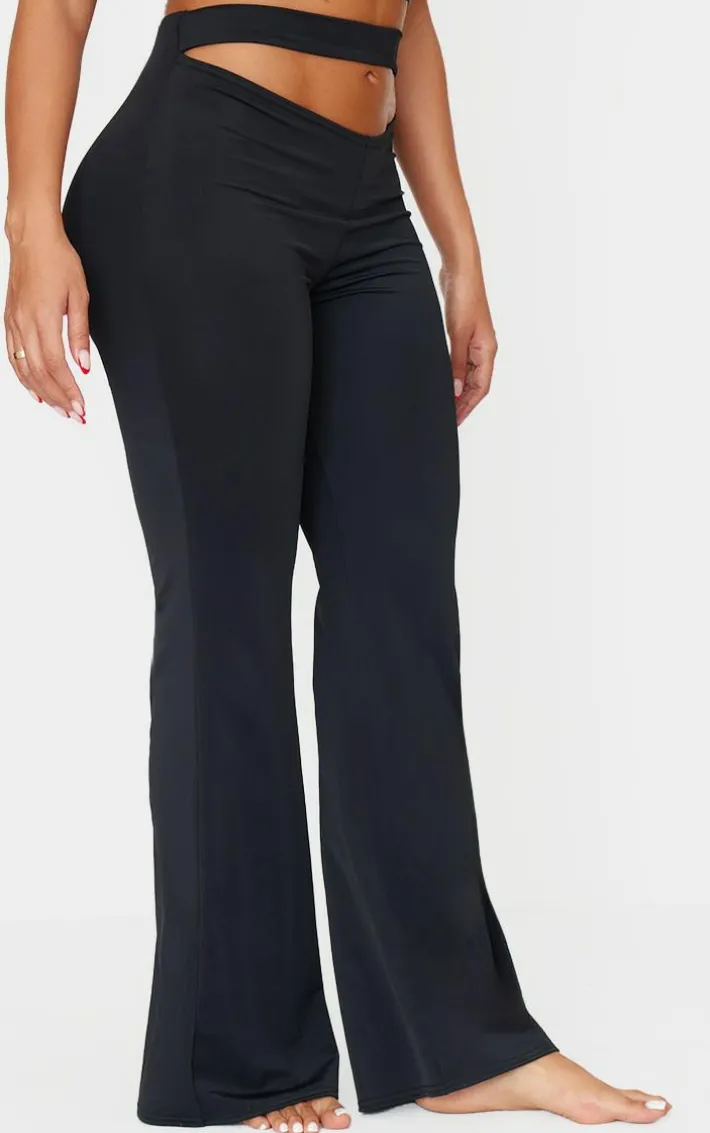 Say hello to your new season staple with this shape black sculpt cut out waist flared pants. Made from a black hue sculpt material with a cut out waist design and flared fit, these pants are a must have. How can you resist? Pair with the matching top, clear heels and simple accessories for an elevated evening look.