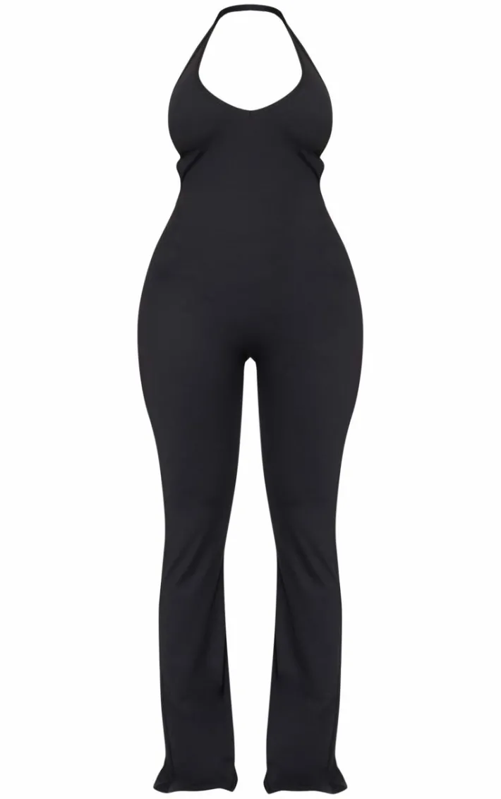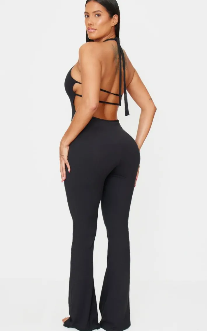Make styling easy this season with this shape black sculpt halterneck strappy back flared jumpsuit. Brought to you in a black hue sculpt material with a halter neckline and strappy back, this flared jumpsuit is a must have. Team with your fave accessories for an off duty finish we can’t get enough of.