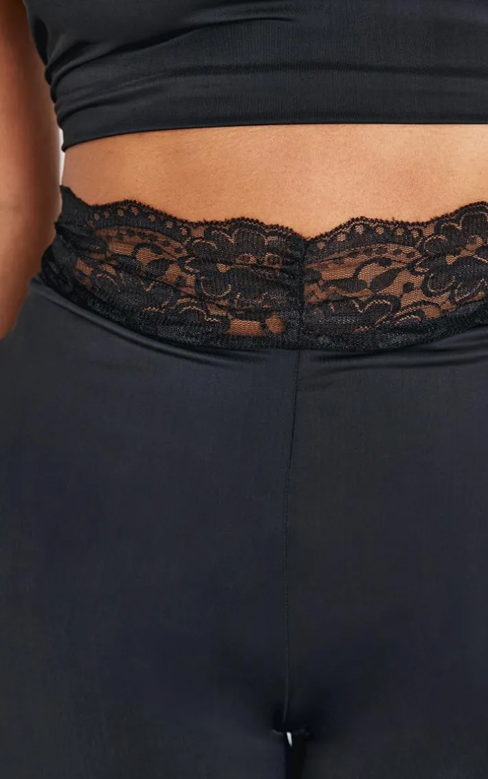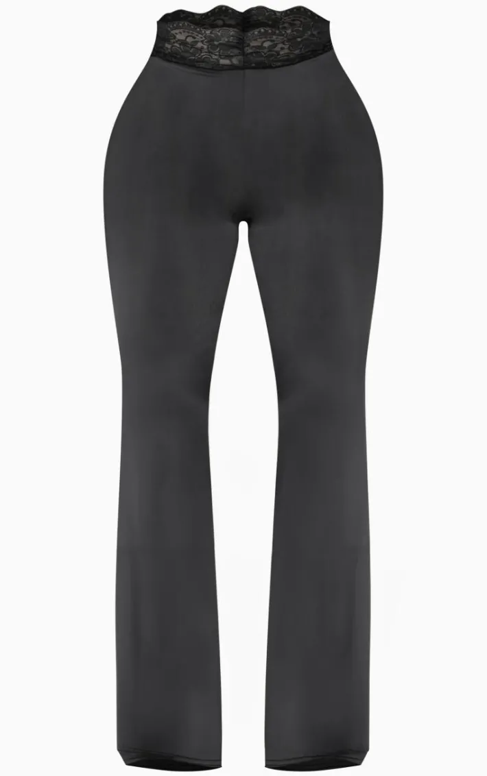 These shape black sculpt lace trim flared pants are at the top of our wish list for a new season go-to weekend ‘fit. Brought to you in a classic black hue, with a sculpt design for a figure-flattering finish and lace trim, your look will instantly be elevated. Style with the matching cami top and a pair of heels for a chic finish.