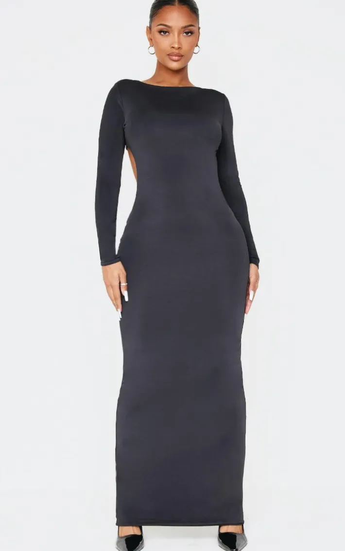 We can’t get enough of this shape black sculpt long sleeve twist open back maxi dress for an elevated weekend ‘fit. Brought to you in a versatile black shade, with a sculpt finish, twist detail and open back design, how can you resist? We know you’re going to look fierce. Pair with your best heels and accessories for an unbeatable vibe.