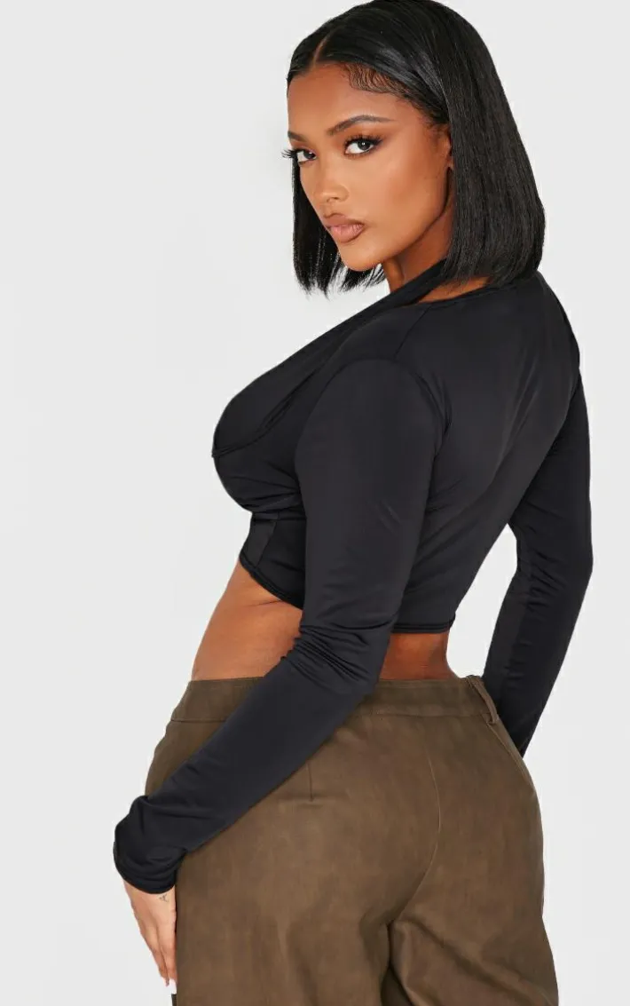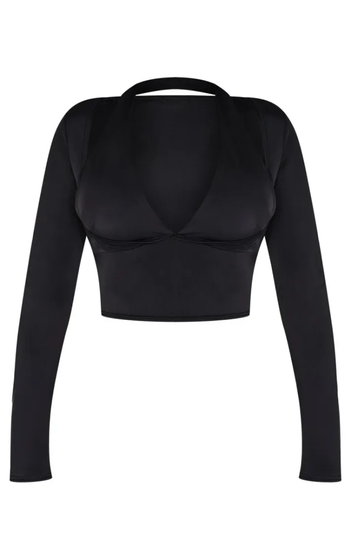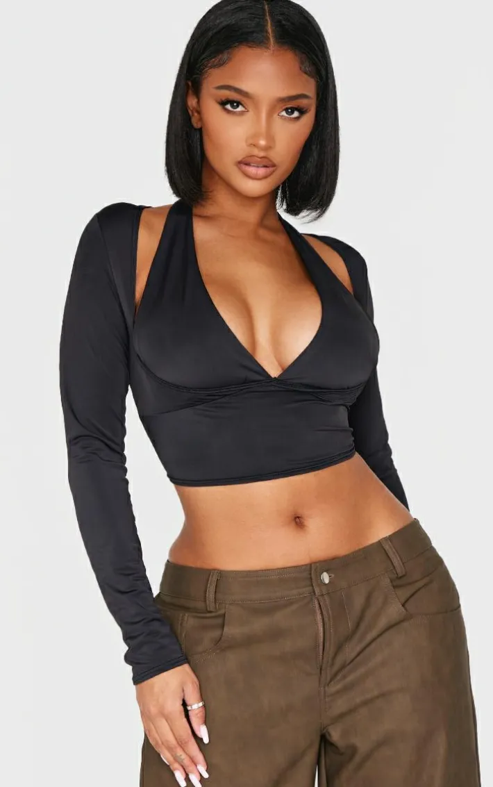 Finish off your evening ‘fit with this shape black sculpt plunge front halter off shoulder top. You’ve never looked better for date night with its daring plunge front, halterneck design and black sculpted fabric. Just team with your go-to jeans and heels for a look that will have all eyes on you.