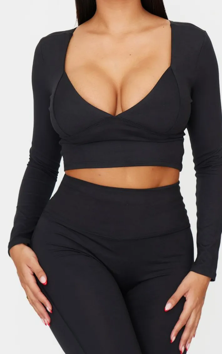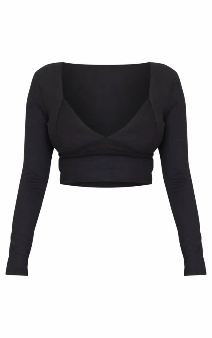 Elevate your go-to look with this shape black sculpt plunge front long sleeve top. Brought to you in a chic black hue, with a flattering sculpt material and plunge front design, what’s not to love? Simply team with a pair of black flares and simple accessories for a chic finish.