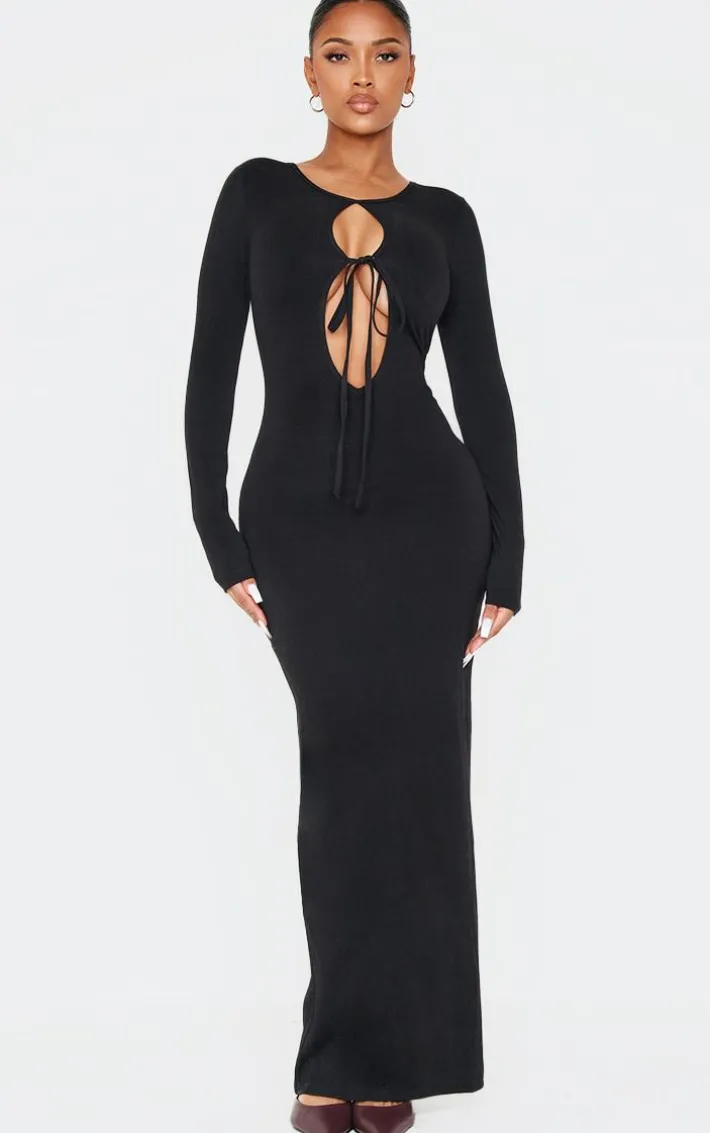 Look all kinds of chic in this shape black sculpt plunge front strappy waist long sleeve maxi dress. Brought to you in a black hue sculpt material with a plunge front detail, strappy waist design and long sleeves, this maxi dress is a must have. Pair with your highest heels and simple accessories for a statement finish that won’t go unnoticed.