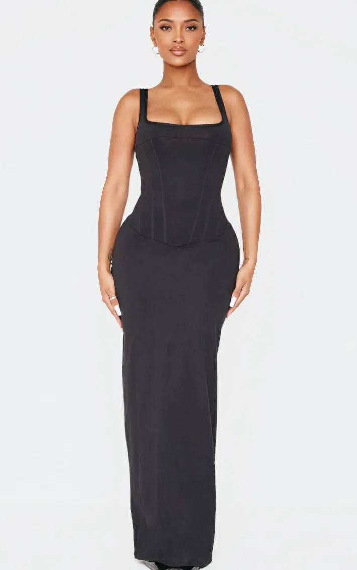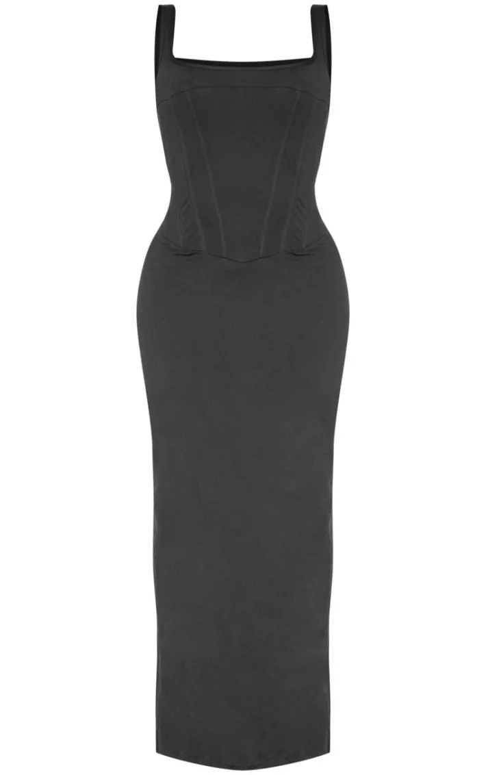 Deciding what to wear just got easier with this shape black sculpt square neck corseted maxi dress. Brought to you in a black hue sculpt material with a square neckline and corseted detail, this maxi dress is a must have. Team with slip on heels and simple accessories for a chic finish.
