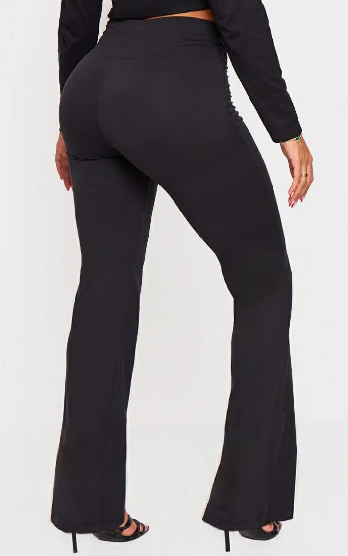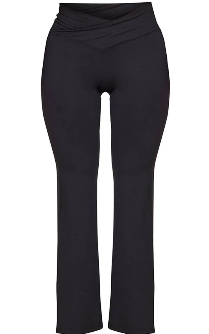 Looking for a pair of pants that will hug your figure in all the right places? Then these shape black sculpt wrap over v waist flared pant are here to serve. They’re made with a black sculpted fabric, a wrap over v waistline and flared pant design. Pair with a matching black top, heels and gold jewelry for a fierce finish.