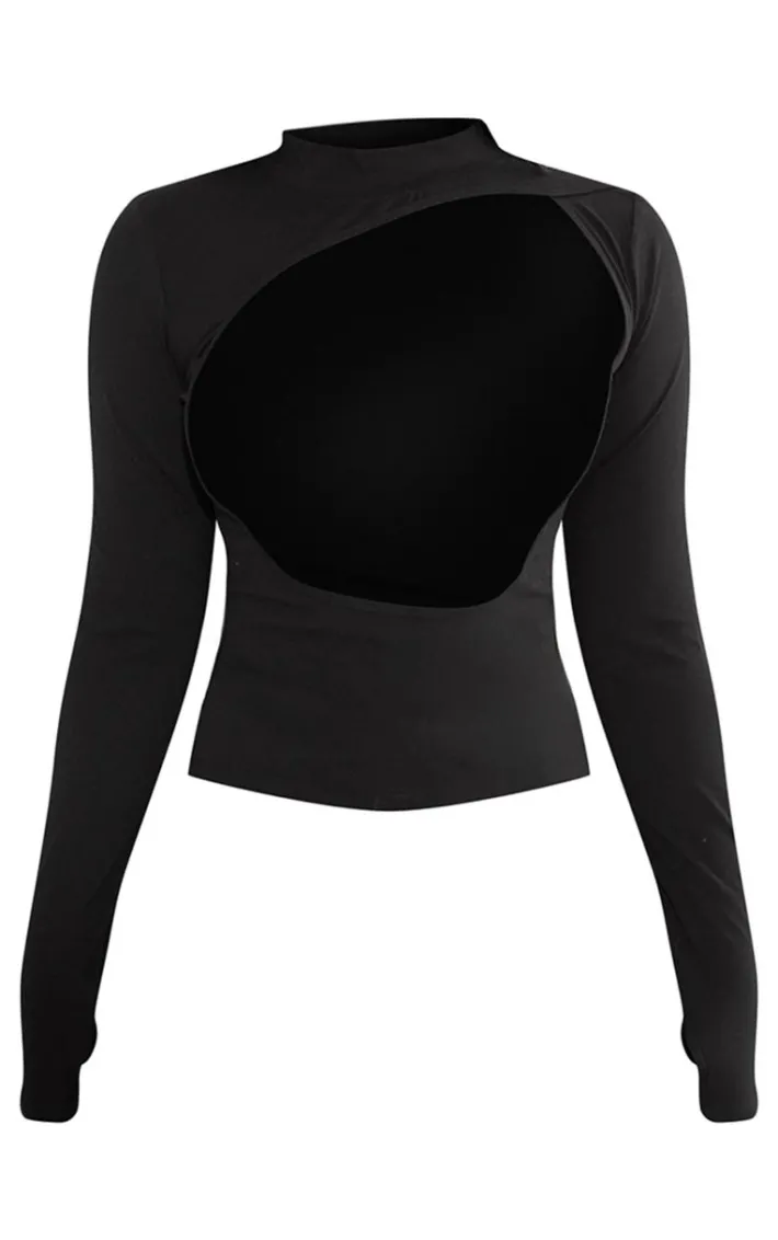 Elevate your everyday look with this shape black sculpted cut out bralette detail long sleeve top. Brought to you in a black sculpt material with a cut out bralette detail and a long sleeve fit, we are seriously obsessed. Team with the matching leggings and aa pair of heels for a look that will earn you all the styling points.