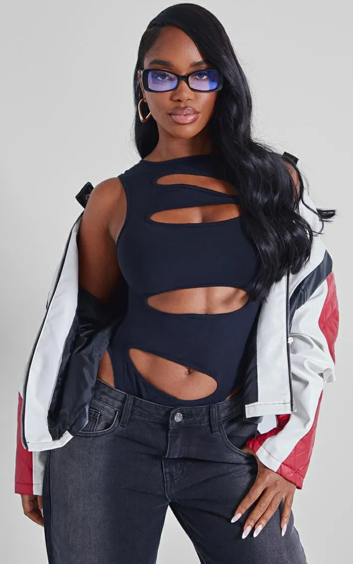 Turn heads with this shape black sculpted slash front bodysuit. Brought to you in a black material with a sculpted design and a slash front detailing that is sure to have hearts racing on matter what. Team with your fave jeans, heels and a statement jacket to he the best dressed this season.