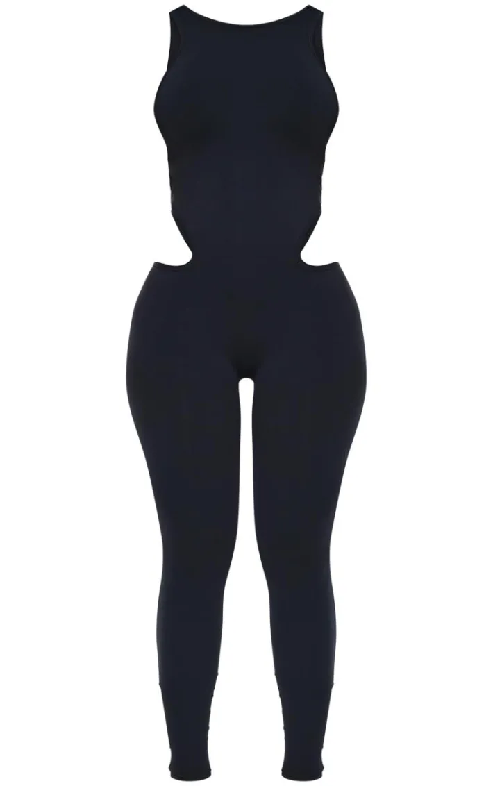Show off your shape with this shape black seamless cut out jumpsuit. Brought to you in a black seamless material with a cut out detail that will have heads turning for all the right reasons. Team with your highest heels and your go-to hoops for a look like no other.