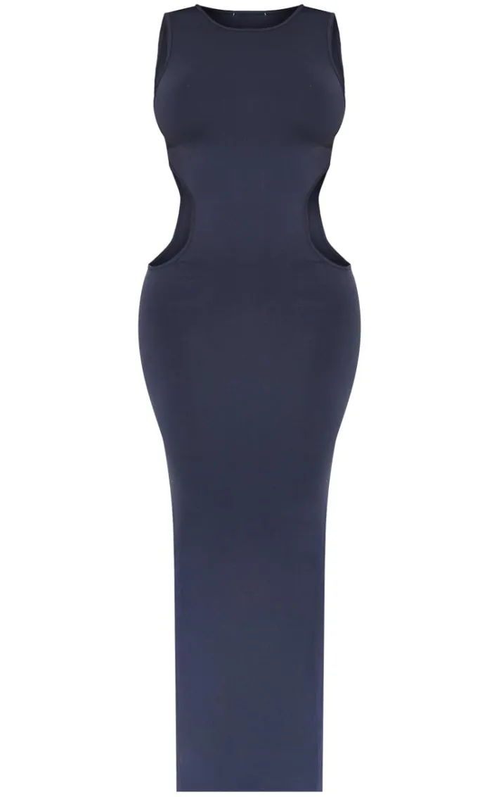 Take your weekend look to the next level with this shape black seamless cut out maxi dress. In an unreal seamless material with a cut out detail and classic black color, how can you say no? Pair with your fave sandals and a gold bracelet for a look we’re loving.