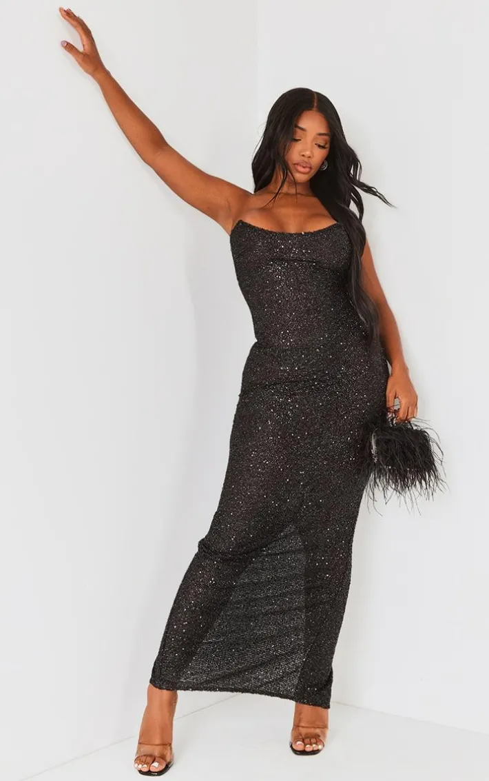 Get ready to show off your confident side in this dreamy shape black sequin bandeau maxi dress, we’re seriously in love. Made using a black sequin material with a bandeau style and a maxi length, this shape dress is perfect for your next upcoming event and beyond. Style it with your highest heels and simple accessories for a flawless finish.