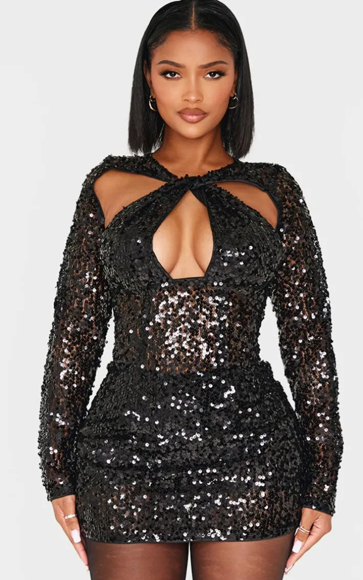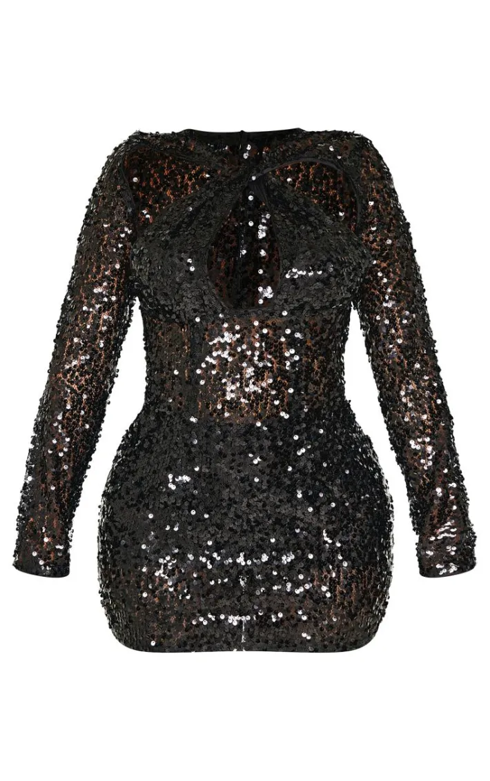 Make a statement in this shape black sequin sheer bodycon dress. Brought to you in a black hue sequin sheer material with a bodycon fit, this dress is turning heads. Style with black heels and gold accessories for a chic silhouette we can’t get enough of.