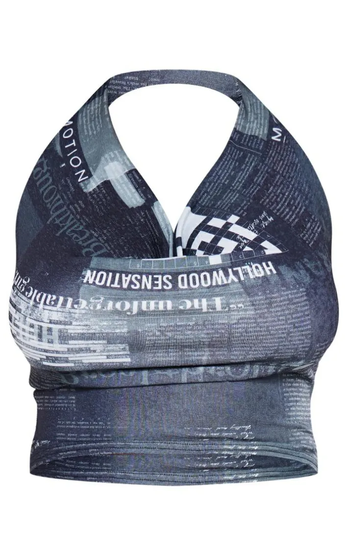 Get your glam on with this shape black sheer mesh newspaper printed cowl neck top. Made from a black sheer mesh material with a newspaper printed design, youÂ’re sure to have all eyes on you. When the weekend calls so does this cowl neck top. So what are you waiting for? Shop the look and opt for the matching skirt and a pair of heels. ItÂ’s a yes from us.