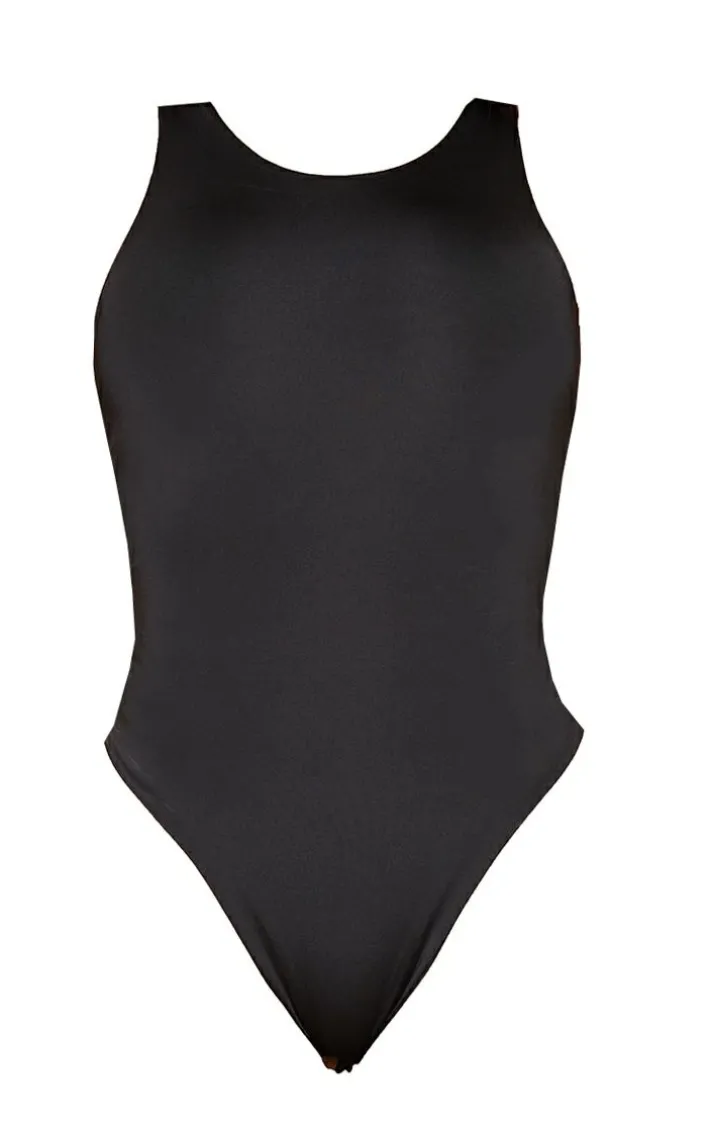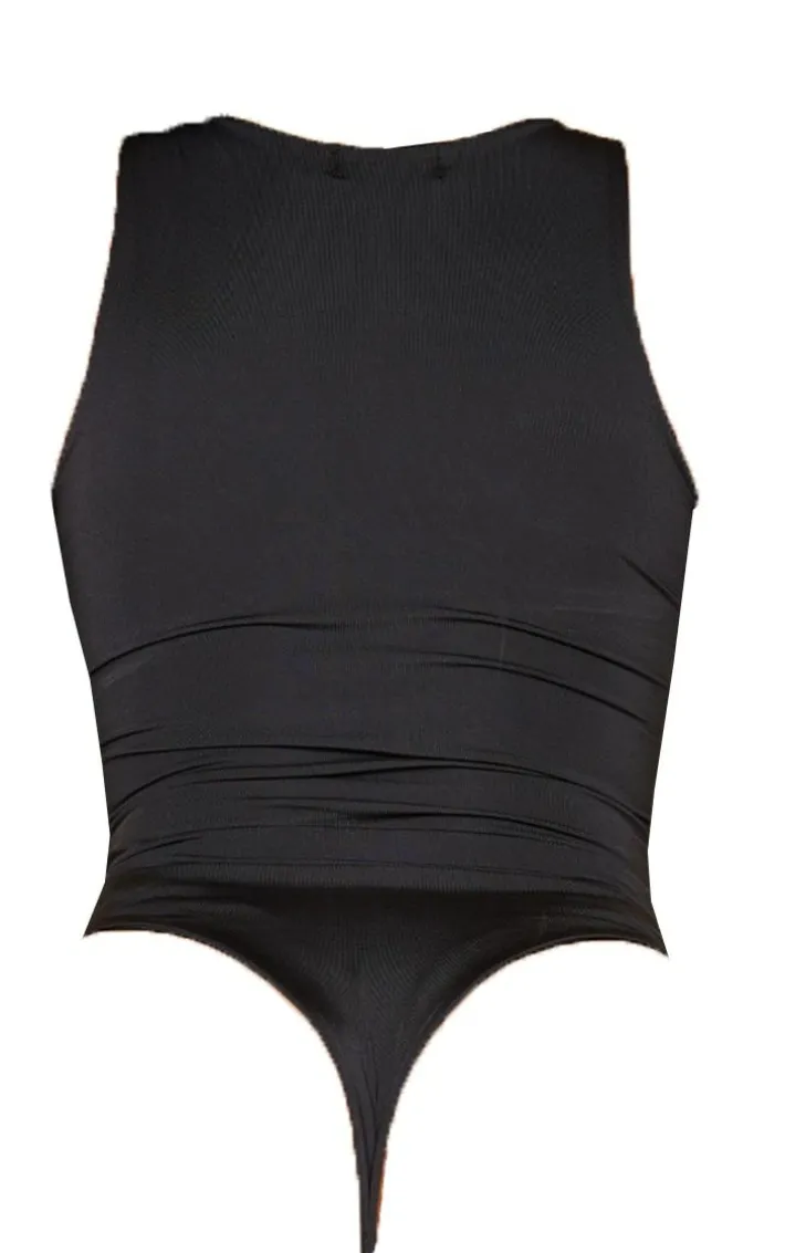 Add this essential black bodysuit for your wardrobe doll because it is perfect for all occasions. Featuring a black slinky fabric and sophisticated high neck style, go all one tone and team with black pants for a blogger worthy look.