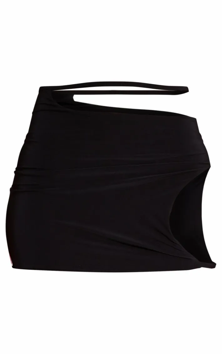 Make a serious style statement this weekend in this shape black slinky cowl low rise mini skirt. Brought to you in a black hue slinky material with a low rise design and a mini fit, we are obsessed. Pair this slinky skirt with the matching top, heels and accessories for a look that is sure to steal all the stares.