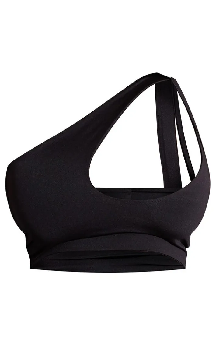 Amp up your weekend look with this fierce crop top. Featuring a black slinky material with a cut out asymmetric design and a cropped fit. Take the look to the next level with faux leather bottoms and heels for a night.