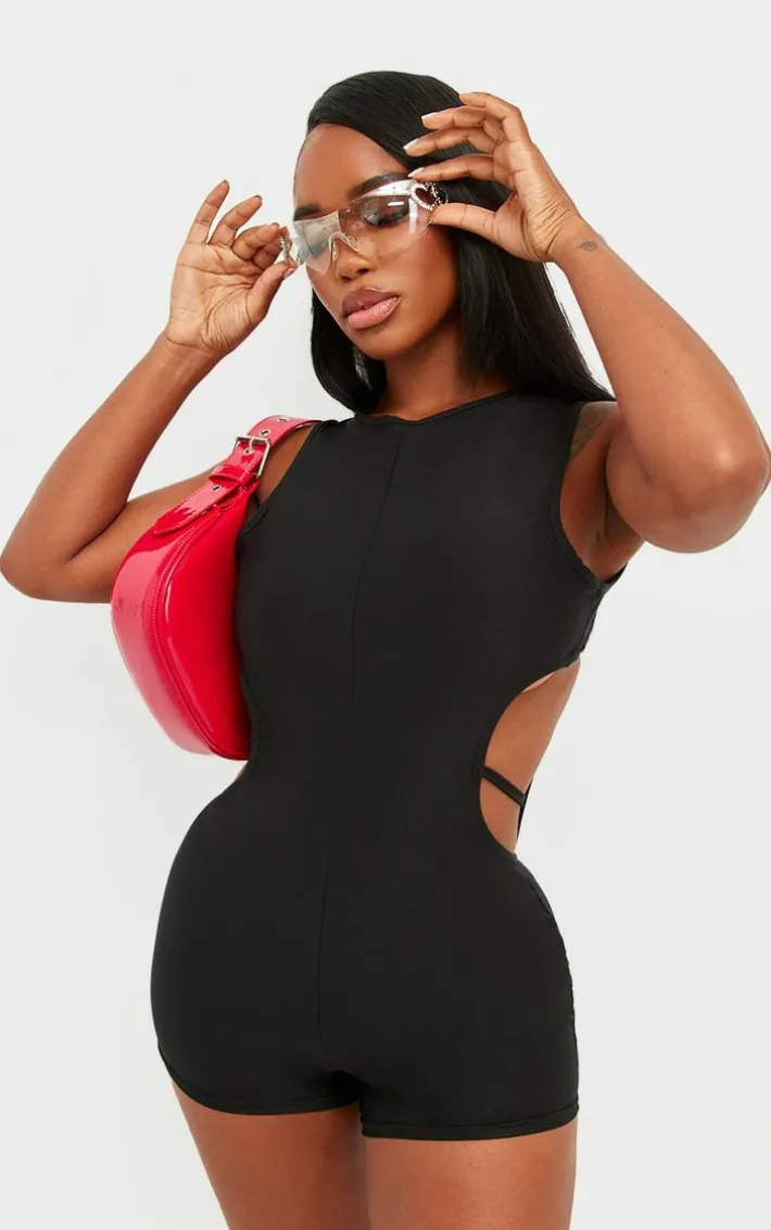 Serve all the attitude this weekend hape black slinky cut out back ring detail unitard, we’re obsessed. Brought to you in a classic black color, with a slinky material and cut out back design. The ring detail brings this to the next level, simply style with a pop of red for a look we are all wanting.