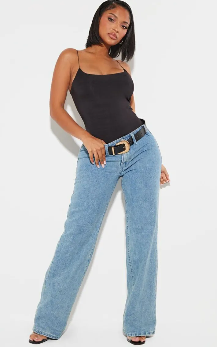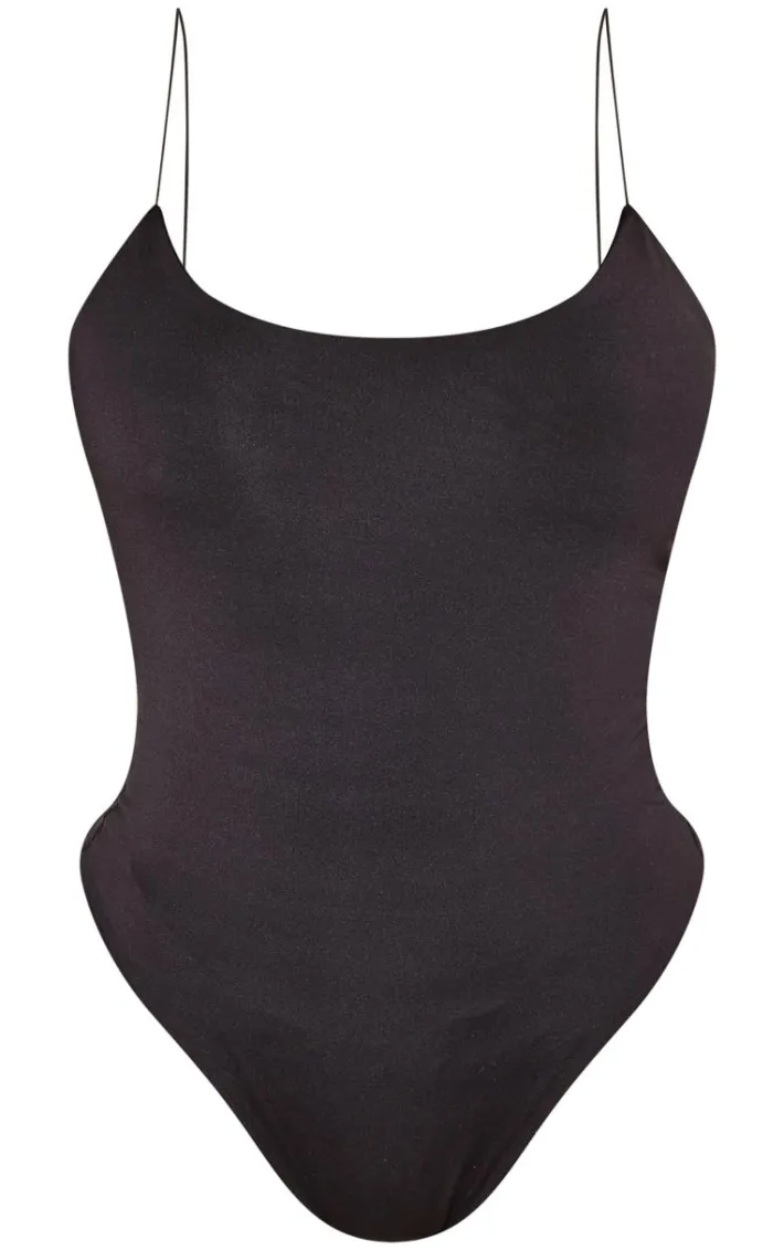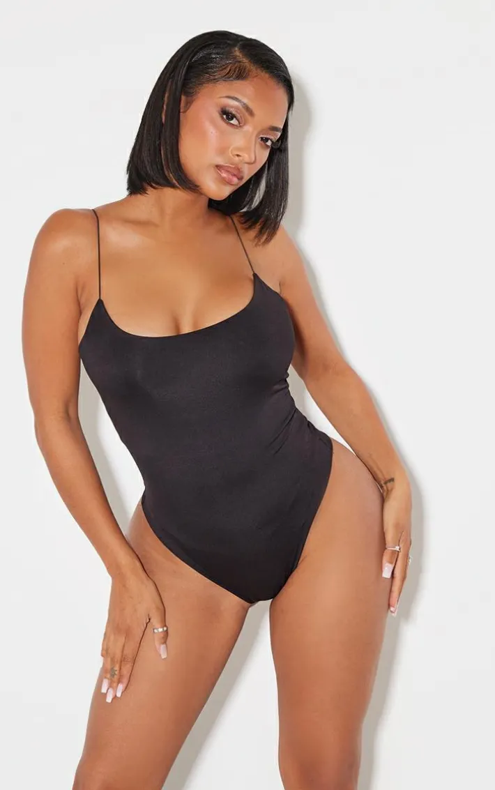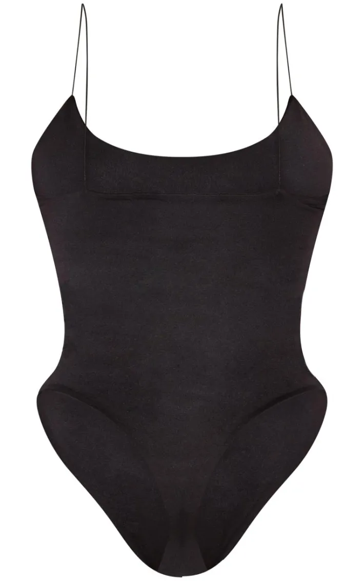 This bodysuit is sure to be a staple piece in your new season wardrobe. Featuring a black slinky material with spaghetti straps and a figure-hugging fit. Team with blue jeans and slip-on heels for a simple but chic look.