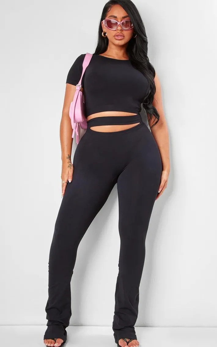 Amp up your off-duty wardrobe with these shape black soft seamless cut out flare pants. Brought to you in a black soft seamless material with a cut out detail and flare design, these pants are a must have. We’re in love. Style with the matching top, flats and chic accessories for a casual chic we can’t get enough of.