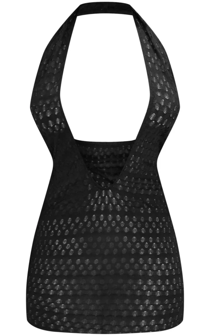 Be ready to look flawless this season with this shape black textured halterneck plunge mini dress which will have you setting trends wherever you step foot. This mini dress is brought to you in a black textured material with a halterneck line and a mini length, we are obsessed. To perfect the look simply style with high heels and accessories for a look that will have all eyes on you.