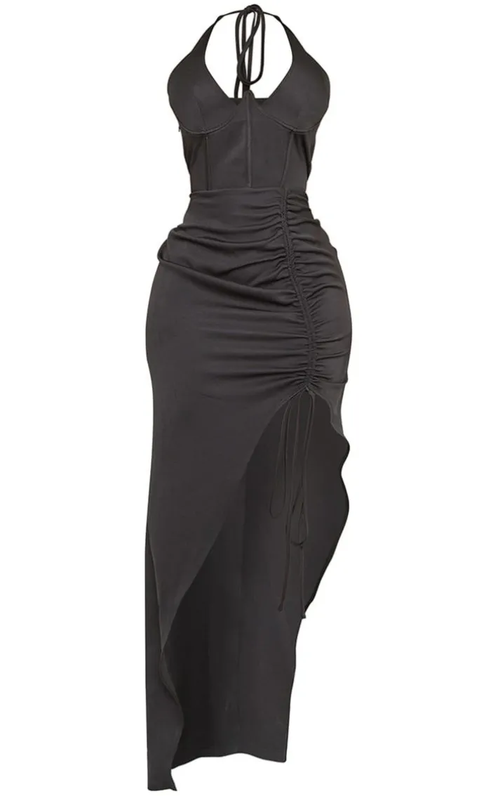 Give your everyday look an edge with this shape black woven halterneck cut out maxi dress. This dress is made from a black woven material for a versatile fit we are obsessing over. With a halterneck design and a cut out detail, what’s not to love? Team this unreal maxi dress with some of your highest heels and a pair of gold hoops for a fool proof finish.