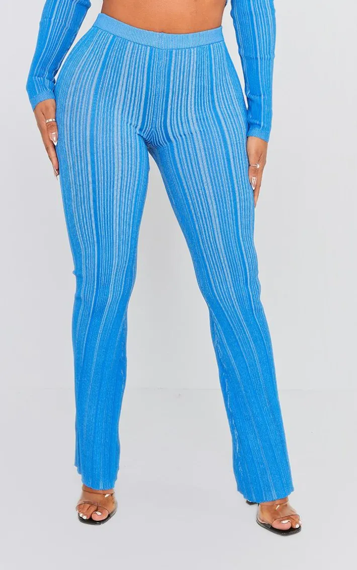 Stay true to blue with these shape blue contrast knit skinny flare pants. These pants are brought to you in a blue knit material with a contrasting design and a skinny flared fit, what’s not to love? These pants are perfect paired with the matching crop top, clear high heels and accessories for a flawless finish.
