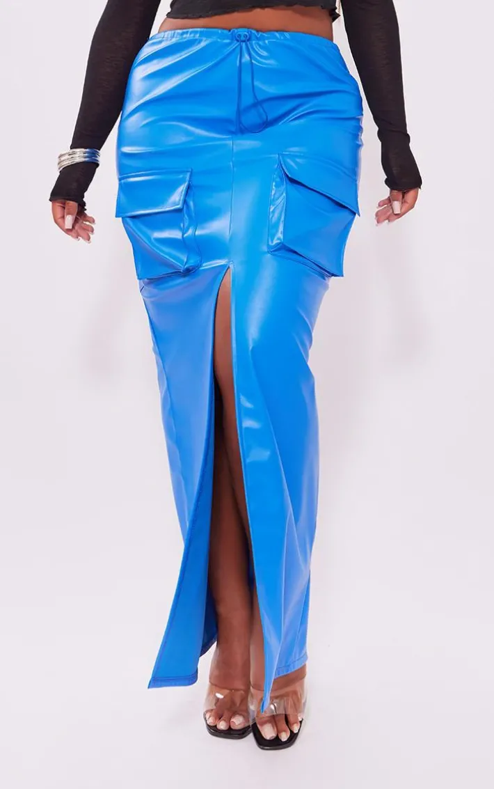 Become the center of attention this weekend with this shape blue faux leather cargo pocket maxi skirt. Brought to you in a blue faux leather material with cargo pocket detail and a figure-flattering fit, how could you say no? This shape maxi skirt is everything we’re loving for your weekend ‘fit and beyond. Simply team with a black crop top, clear heels and gold accessories for a flawless finish.