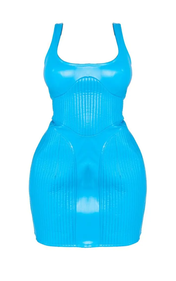 Take on your weekend the right way with this statement shape blue faux leather quilted detail bodycon dress. Made from a blue faux leather material with a quilted detail, this is everything weÂ’re loving and more. With itÂ’s figure-hugging fit this bodycon dress is sure to hug you in all the right places. To complete the look style this seamlessly with some clear heels and your fave earrings for a look that will secure you all the likes.