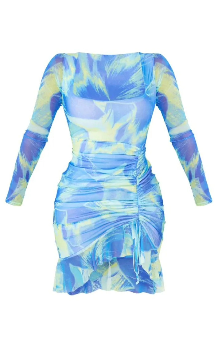 Add some of this seasons must-have prints into your weekend wardrobe with this shape blue floral printed mesh ruched side frill hem bodycon dress. This bodycon dress is brought to you in a blue floral printed mesh material with ruched sides and a frill hem, how could you turn this down? Complete the look by styling this with your dreamy high heels and accessories for a flawless finish.