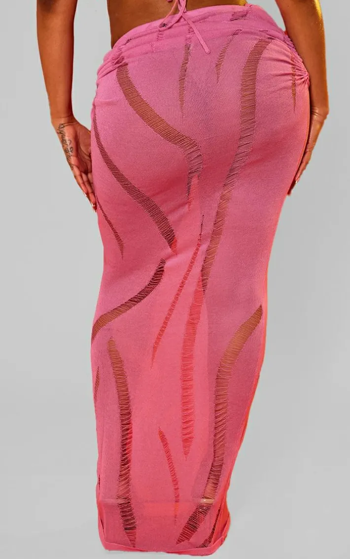 Get your glam on with this shape bring pink knit ladder detailed low rise ruched side maxi skirt. Made from a bright pink knit material with ladder detail, a low rise, a ruched side and a maxi length, youÂ’re sure to have all eyes on you. When the weekend calls so does this maxi skirt. So what are you waiting for? Shop the look and opt for the matching bralet. This look will have you setting trends wherever you step foot.