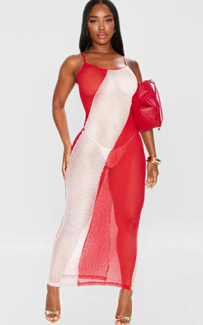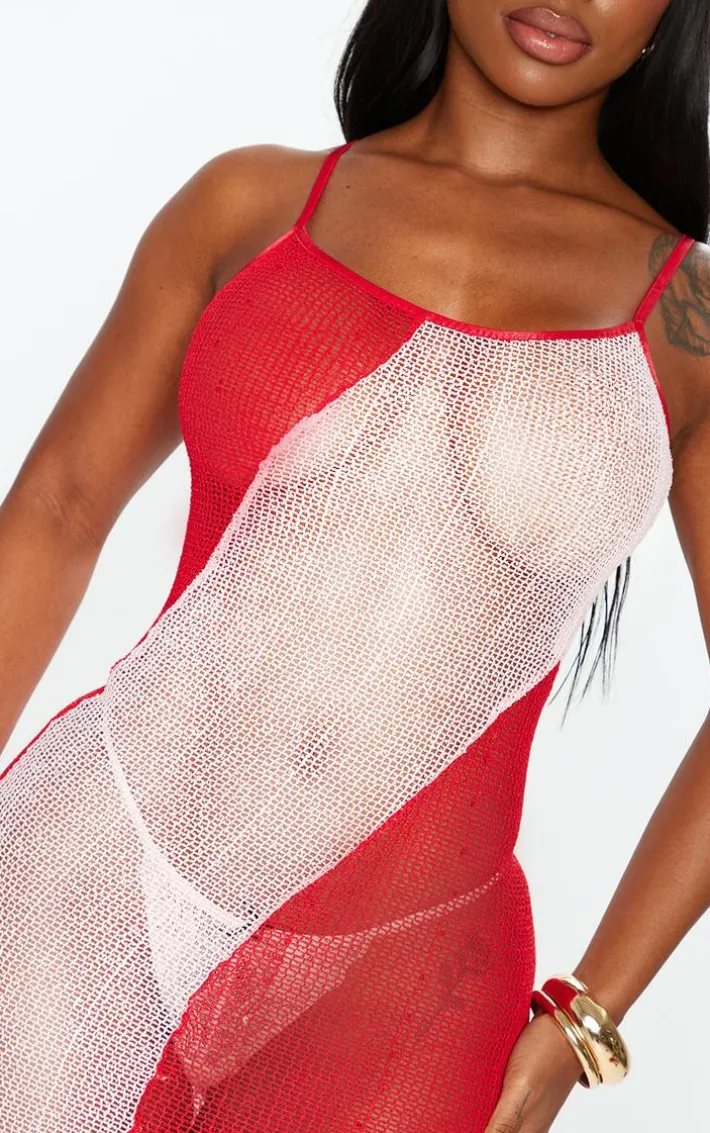Bring all the drama to your weekend wardrobe with this statement shape bright red fishnet red contrast detail strappy maxi dress, we’re obsessed. This shape dress features a bright red fishnet material with a contrasting design and thin straps, you’re sure to be at the center of attention. Just add strappy heels and gold hoop earrings for a look that will get everyone talking.