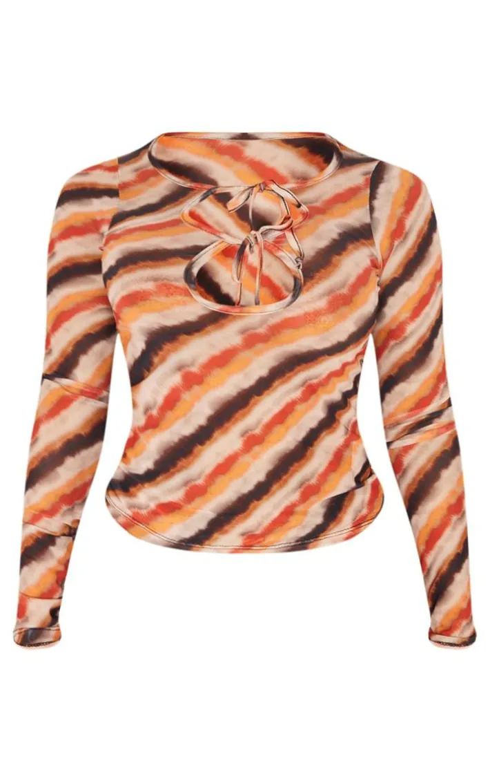 Have heads turning for all the right reasons with this shape brown abstract printed cut out long sleeve top. This top is brought to you in a brown abstract printed material with a cut-out front and long sleeves, what’s not to love? This top is everything and more we’re loving paired with the matching skirt, high heels and accessories for a look that we can’t stop crushing on.