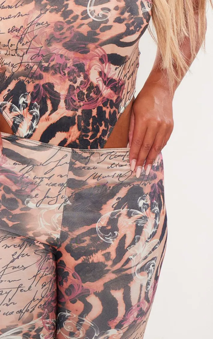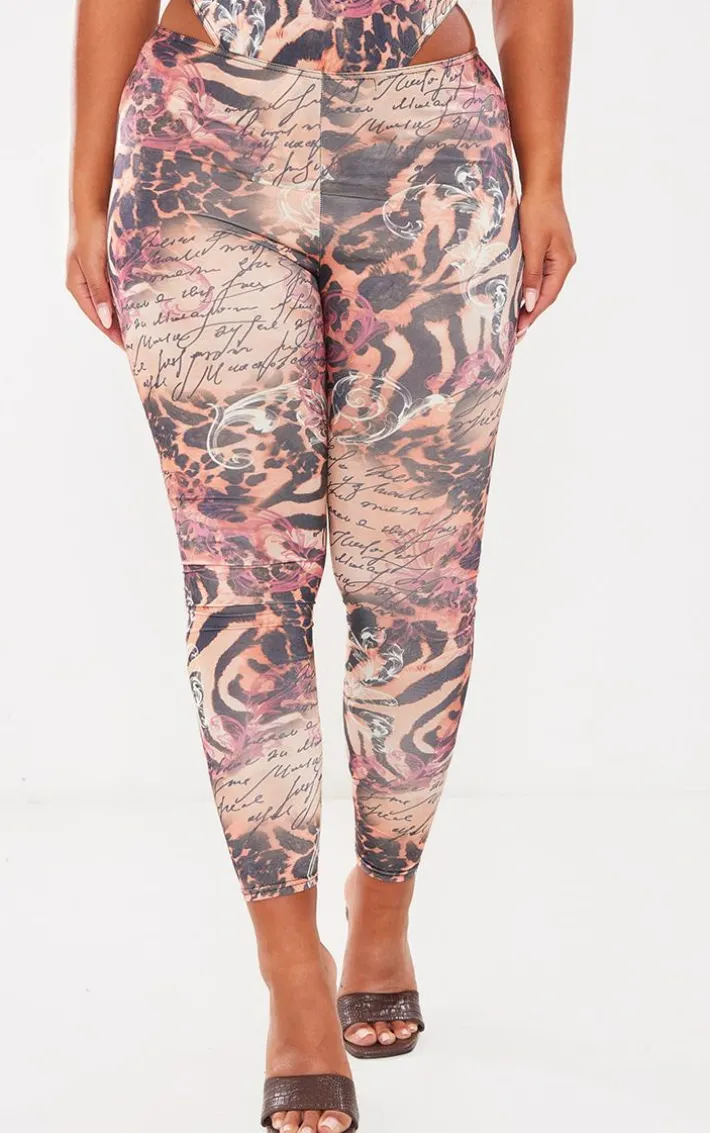 Get ready to have all eyes on you with theseshape brown animal scribble printed leggings. Brought to you in a brown material with an animal scribble printed design whatÂ’s not to love? With its flattering fit, youÂ’ll sure to earn all the likes with this dreamy piece. Finish off the look by pairing this with the matching top and your fave mule heels. ItÂ’s a yes from us.