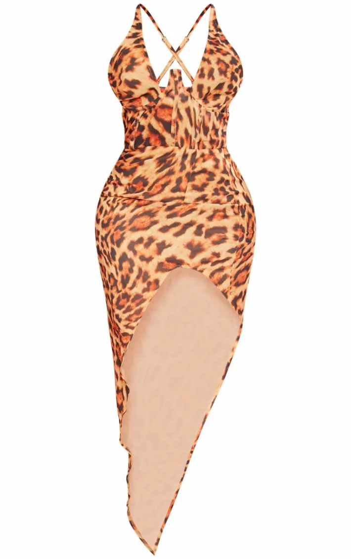 You are guaranteed to steal all the stares in this shape brown leopard printed chiffon corset detail asymmetric hem midi dress. Brought to you in a brown leopard printed chiffon material with corset detail, an asymmetric hem and a midi length, how can you resist? Seriously chic and in a figure-flattering fit, this midi dress is perfect for your next occasion. Just add your heels and some glam accessories to take the look to a whole new level.