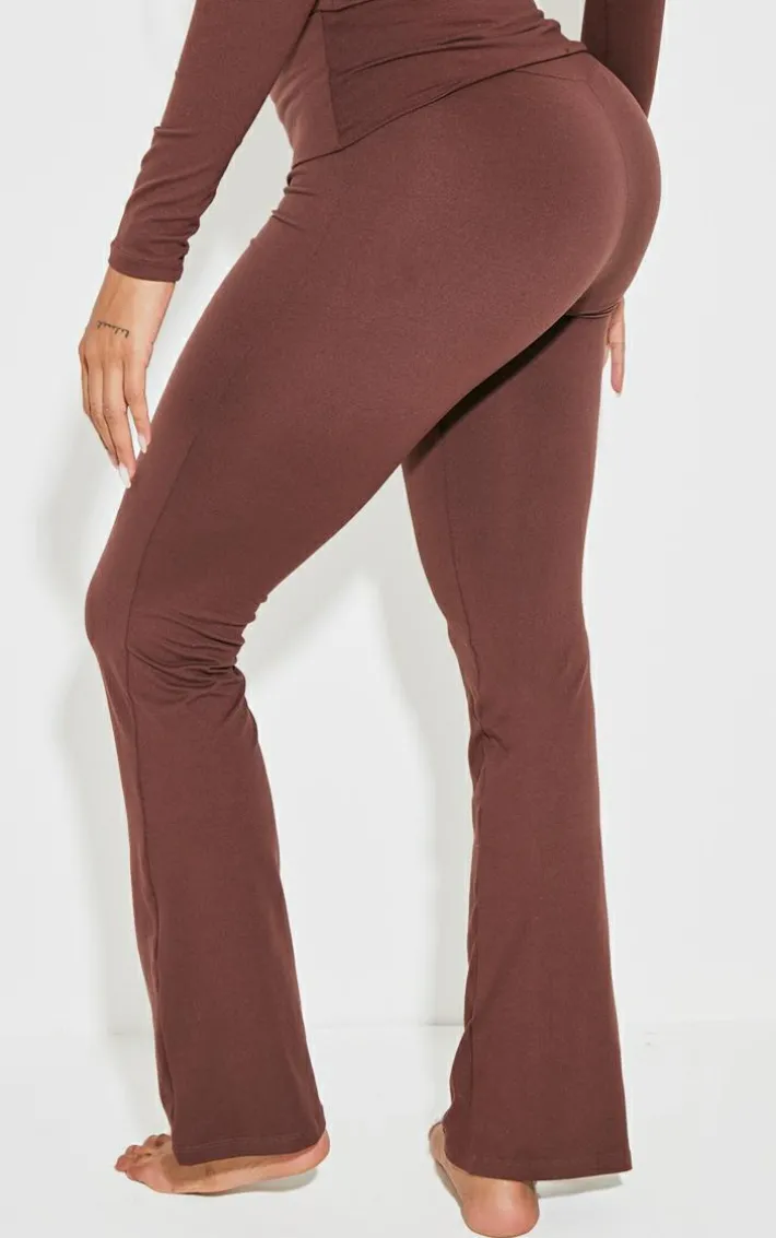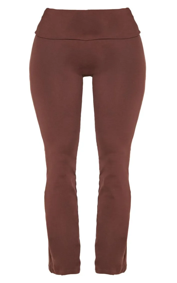 Upgrade your off duty wardrobe with these shape brown stretch sculpted foldover waist flare pants. Brought to you in a brown hue stretch sculpted material with a foldover waist detail and flare design, these pants are calling your name. Style with the matching hoodie and your fave accessories for a look like no other.
