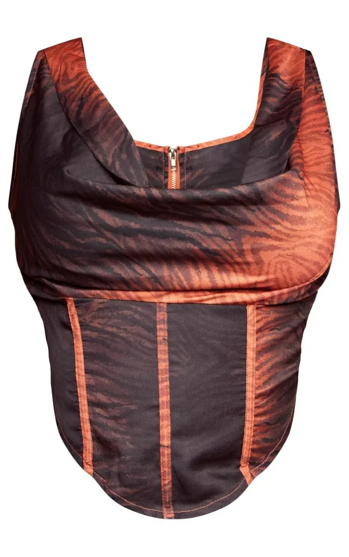 Stand out from the crowd for all the right reasons in this shape brown zebra printed bardot corset. Brought to you in a brown hue material with a bold zebra print design a bardot neckline and a figure-hugging corset fit, we are obsessed. Style this shape corset with the matching skirt, clear strap heels and gold hoops for a weekend-worthy look we just can’t get enough of.