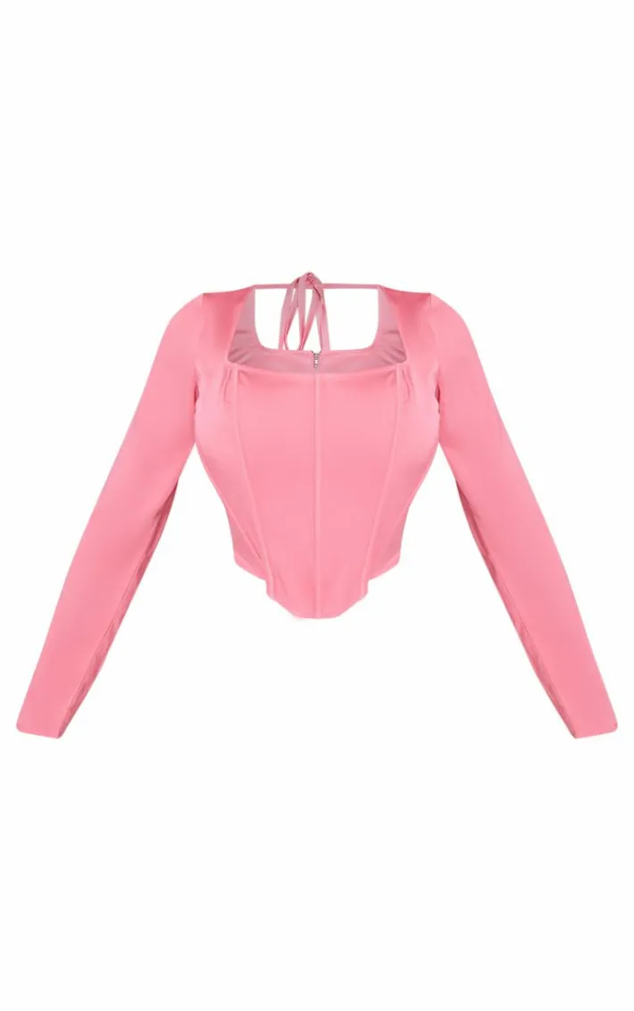 Get ready to add a pop of pink to your weekend look with this shape candy pink woven boning detail long sleeve corset. Brought to you in a candy pink hue woven material with a boning detail and long sleeves, how can you resist? In a flattering corset fit, this shape top is sure to take any look from 0-100. Style seamlessly with the matching shorts and heels for a look that will make heads turn.