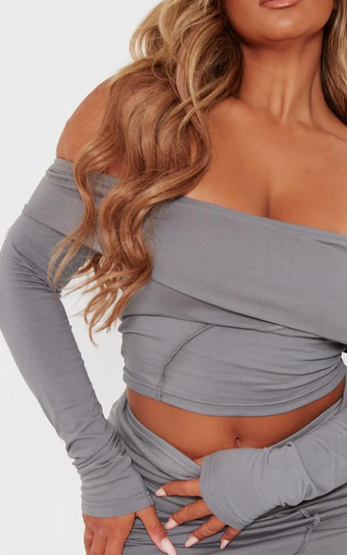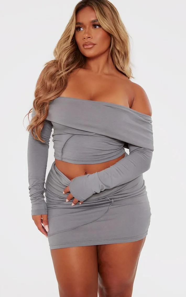 When the weekend calls, so does this shape charcoal bardot seam detail crop top. This crop top is made from a charcoal material with a bardot design, what’s not to love ? With a seam detail and a crop length, this top is perfect for those day to night looks. Team with the matching skirt and some knee high boots for a finished look like no other.