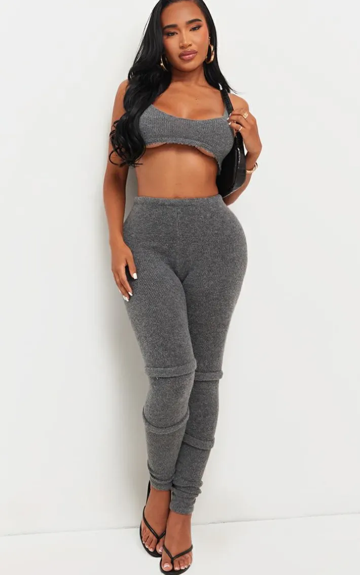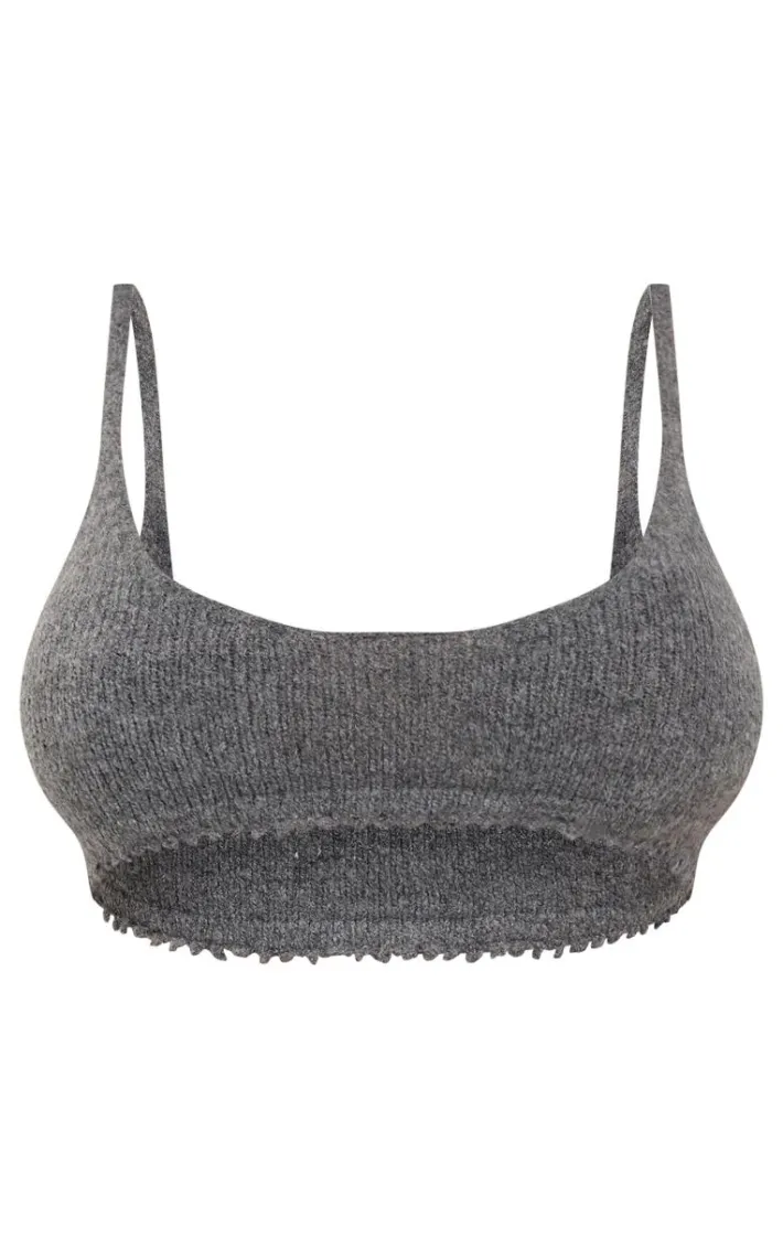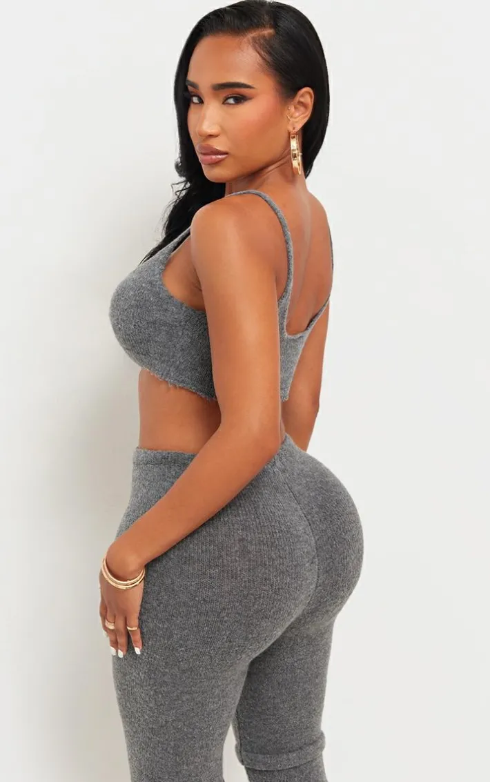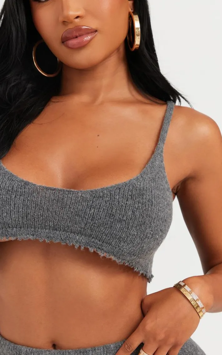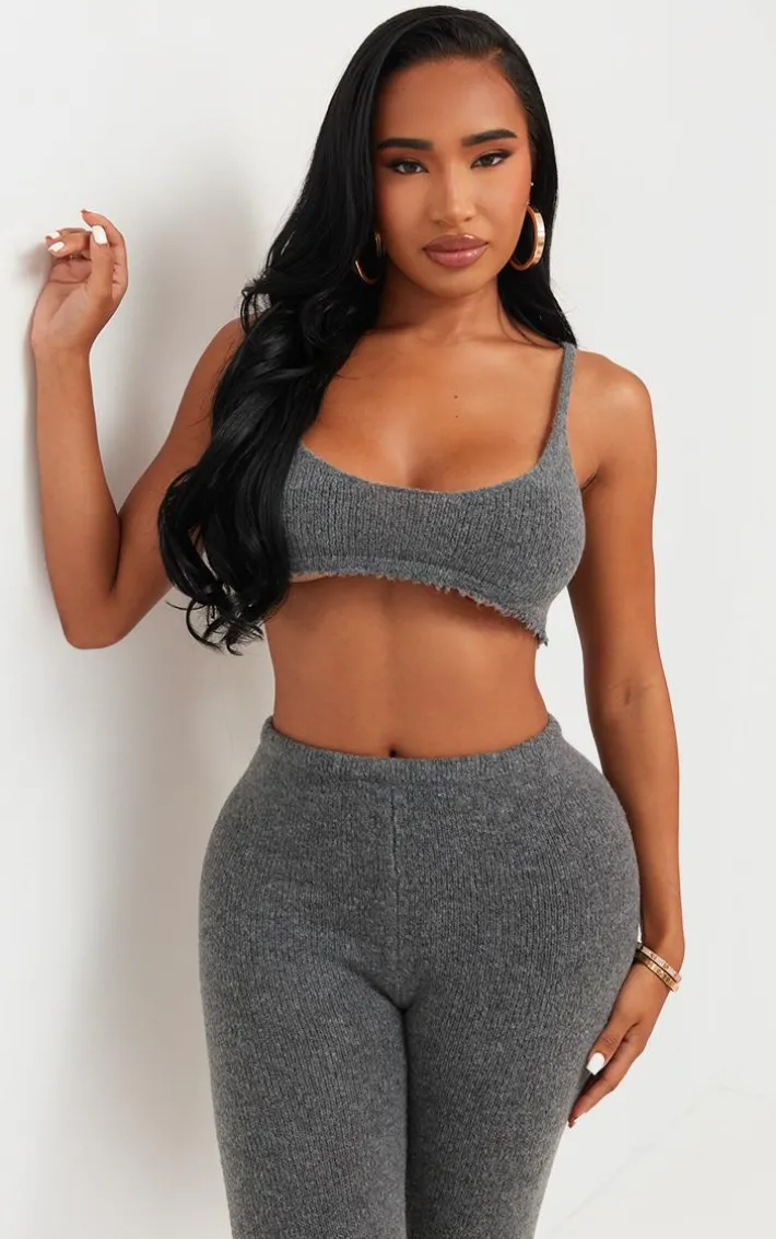 When the weekend calls so does this shape charcoal knit extreme crop bralet. Brought to you in a charcoal knit material with an extreme crop design, this bralet is at the top of our wish list. Style with the matching leggings, black heels and gold accessories for a combo we’re crushing on this season.