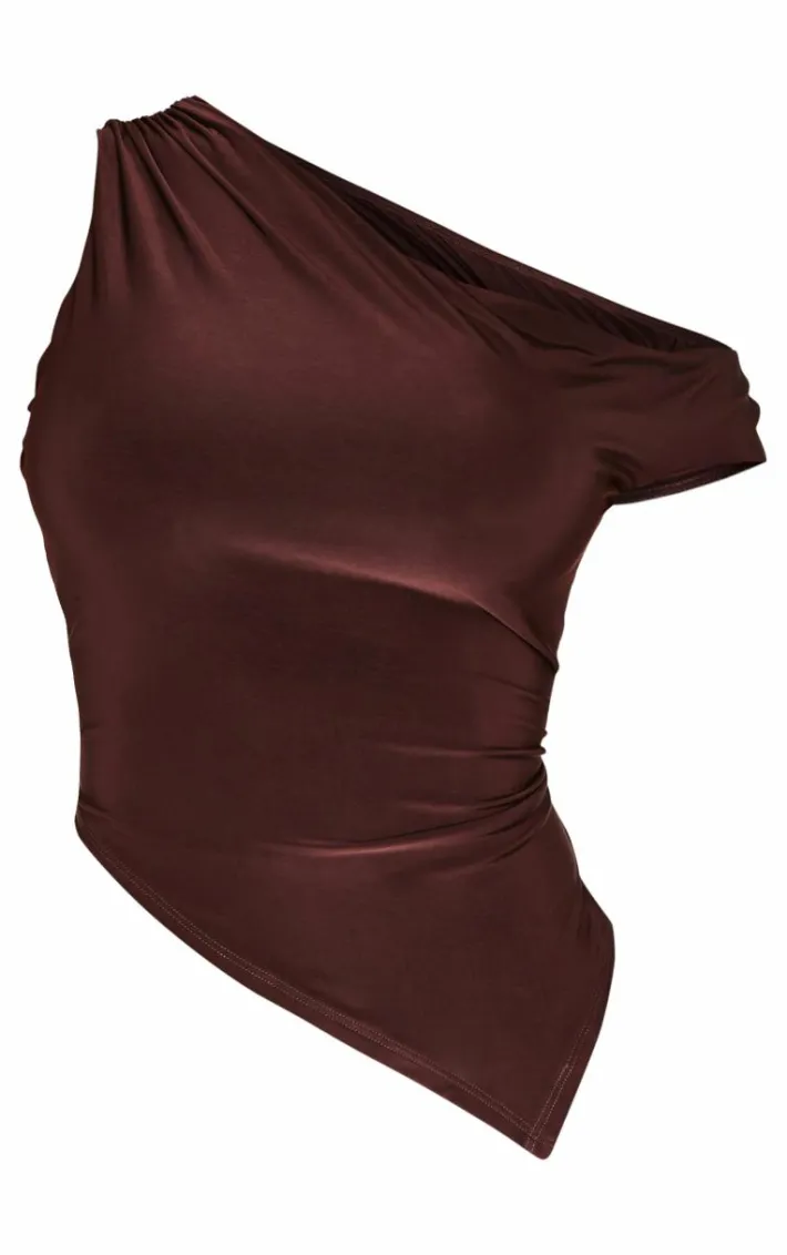 Turn heads for all the right reasons in this shape chocolate asymmetric off shoulder longline top. Brought to you in a chocolate material with an asymmetric design and an off the shoulder detail, you are sure to feel chic in tis longline top. Team this top with the matching skirt and your fave heels to stand out from the rest.