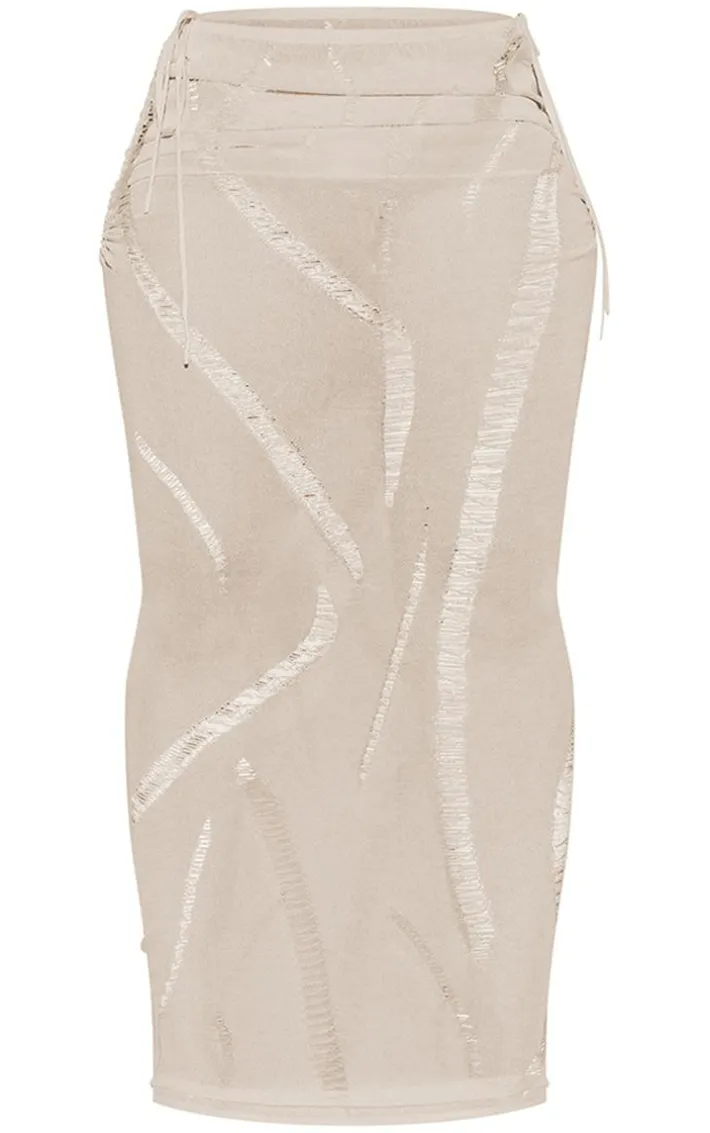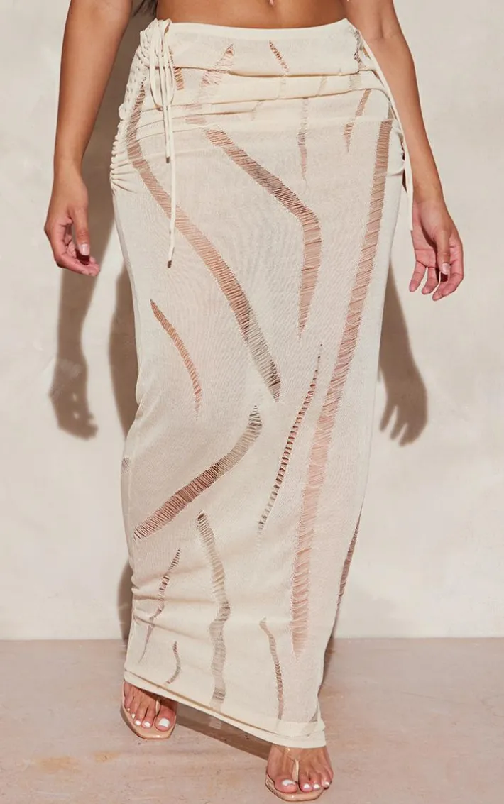 Switch up your style game with this unreal shape cream knit ladder detailed low rise ruched side maxi skirt, you’re sure to be looking all kinds of glam. Made using a cream knitted laddered material with a low rise design and ruched detailing, get ready to show off your confident side. Team this shape maxi skirt with the matching top, clear heels and a shoulder bag for a look everyone will want.