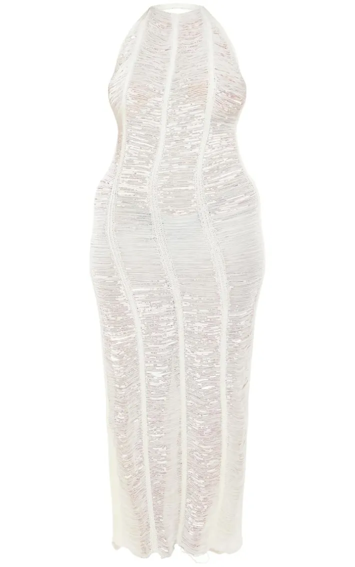 Get your glam on with this shape cream knit ladder halterneck maxi dress. Made from a cream knit material with halterneck design, you’re sure to have all eyes on you. With ladder detailing and a maxi length, you won’t be able to resist. So what are you waiting for? Shop the look and opt for a pair of clear heels and your fave gold accessories. It’s a definite yes from us.