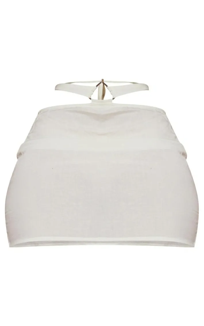 Add some sultry vibes to your weekend wardrobe with this shape cream linen look triangle trim detail mini skirt. This mini skirt is made from a cream linen look material that will have you feeling totally on trend this season and beyond. With a triangle trim detail and a mini length, it’s a yes from us. Team with the matching crop top and some lace up the leg heels for a foolproof finish we are loving.