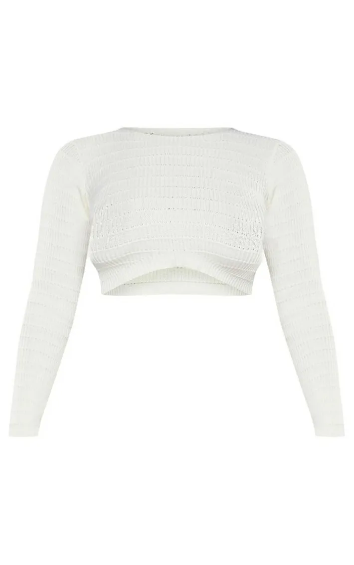 Hit refresh on your new season wardrobe with this top. Featuring a cream knit material with a panelled design and a cropped length. Wear with the matching skirt and heeled boots for a look we’re loving.