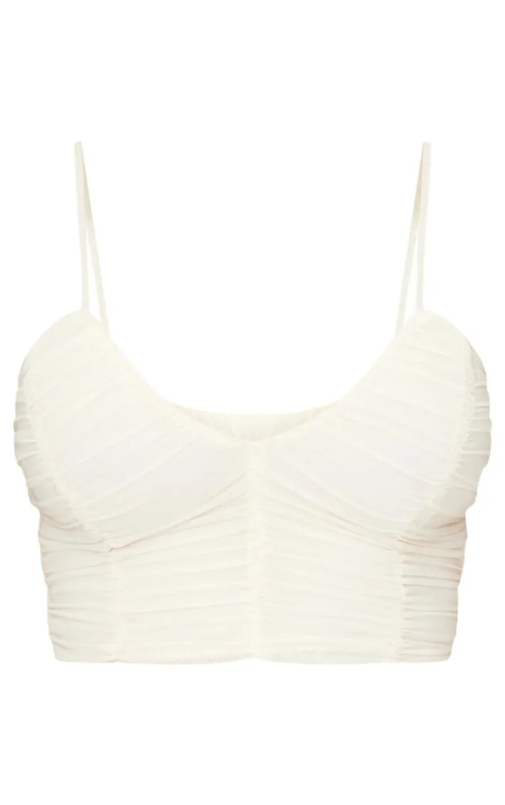 Deciding what to wear just got easier with this shape cream plunge front ruched cami top. Brought to you in a cream hue material with a plunge front neckline and ruched detail, this cami top is all the new you need. It’s a yes from us. Team this top with the matching skirt, clear heels and gold accessories for an elevated combo we’re loving