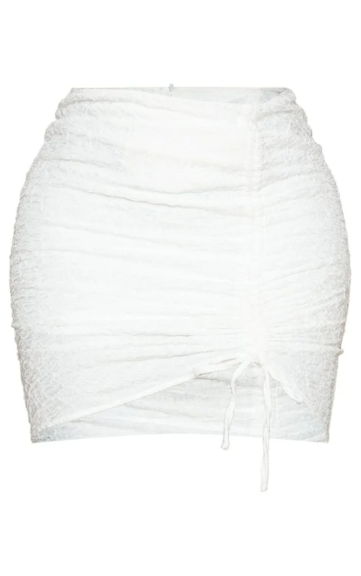 Complete your weekend look with this skirt. Featuring a cream textured material with a ruched tie side and a figure-hugging fit, what’s not to love? Style with the matching corset and simple accessories to complete the look we’re obsessing over.