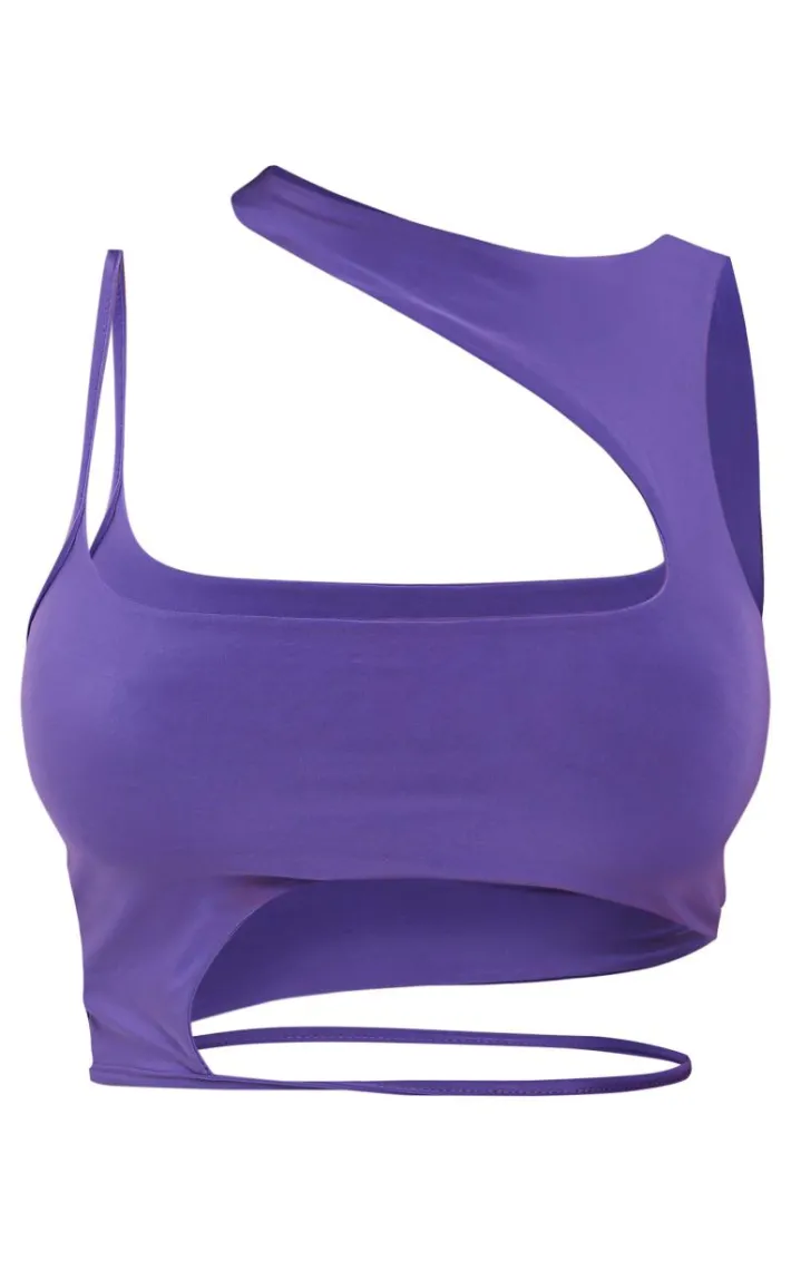 Add some statement hues to your wardrobe with this shape dark purple slinky cut out sleeveless crop top. Brought to you in a dark purple material with a cut out detail and a sleeveless design, what more could you want? This crop top is at the top of our new season wish list. Team this crop top with the matching skirt and a pair of heels to finish off the look we are loving.