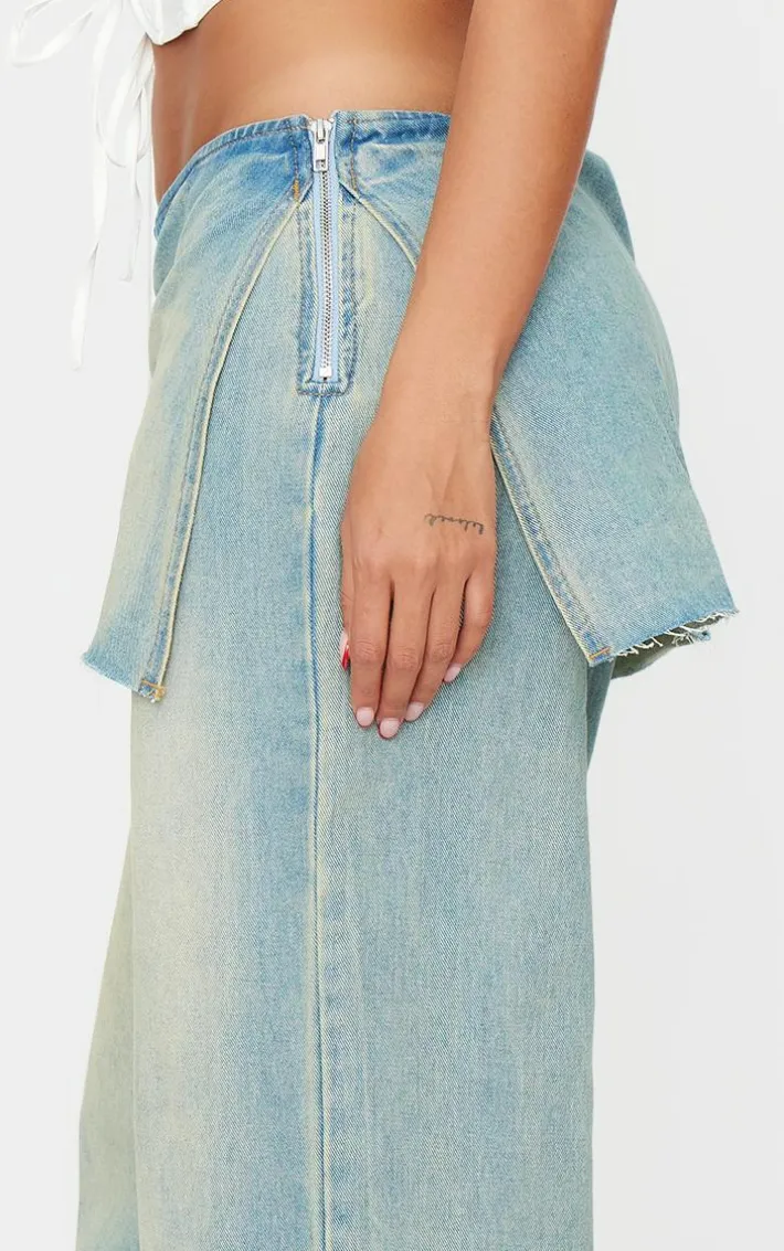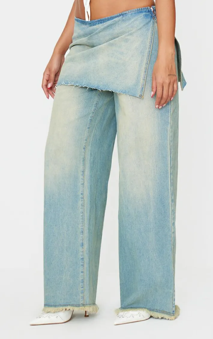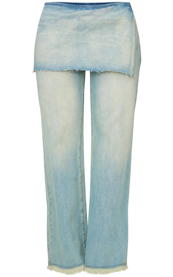 Switch up your weekend style game with these shape denim skirt look jeans. Brought to you in a denim material with a skirt look design, what more could you want? Style these denim jeans with a corset top and heels for a look that is sure to make heads turn wherever you go.
