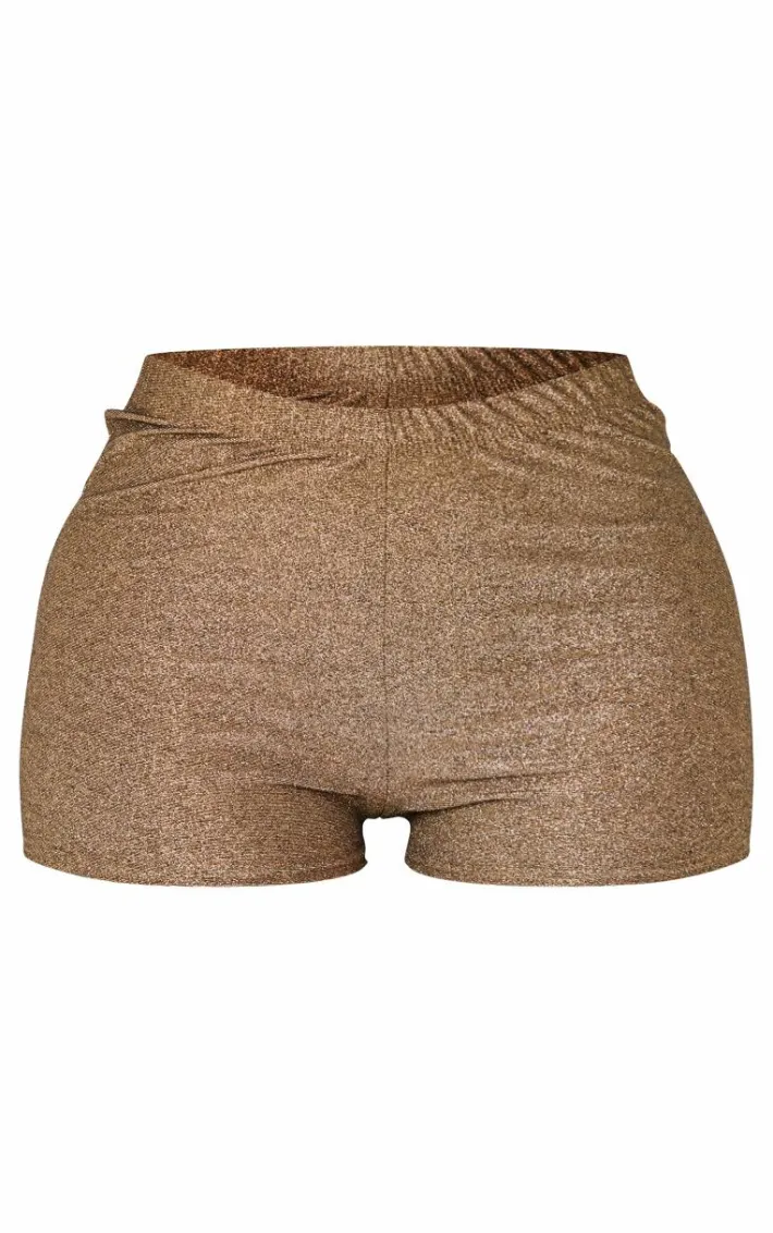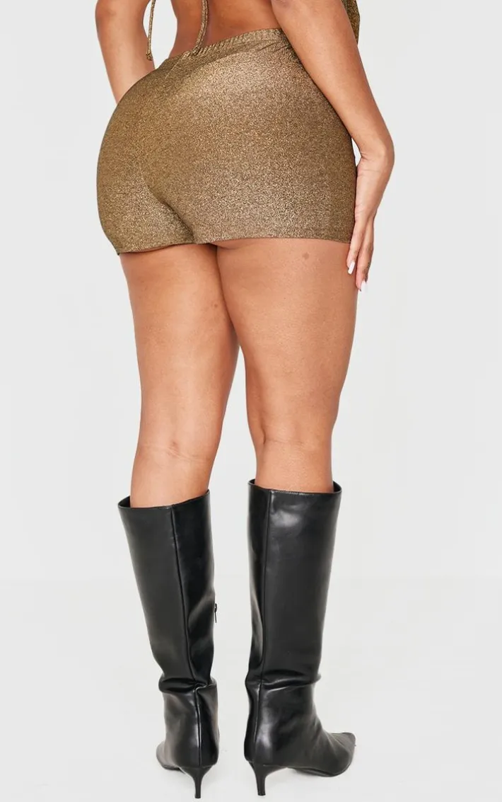 Step out in style with these shape gold glitter lurex mini shorts. Brought to you in a gold glitter material with a lurex design and a min length, you are sure to get hearts racing with these shape shorts. Team with the matching top and your go-to knee high heeled boots for a look that will get you noticed.