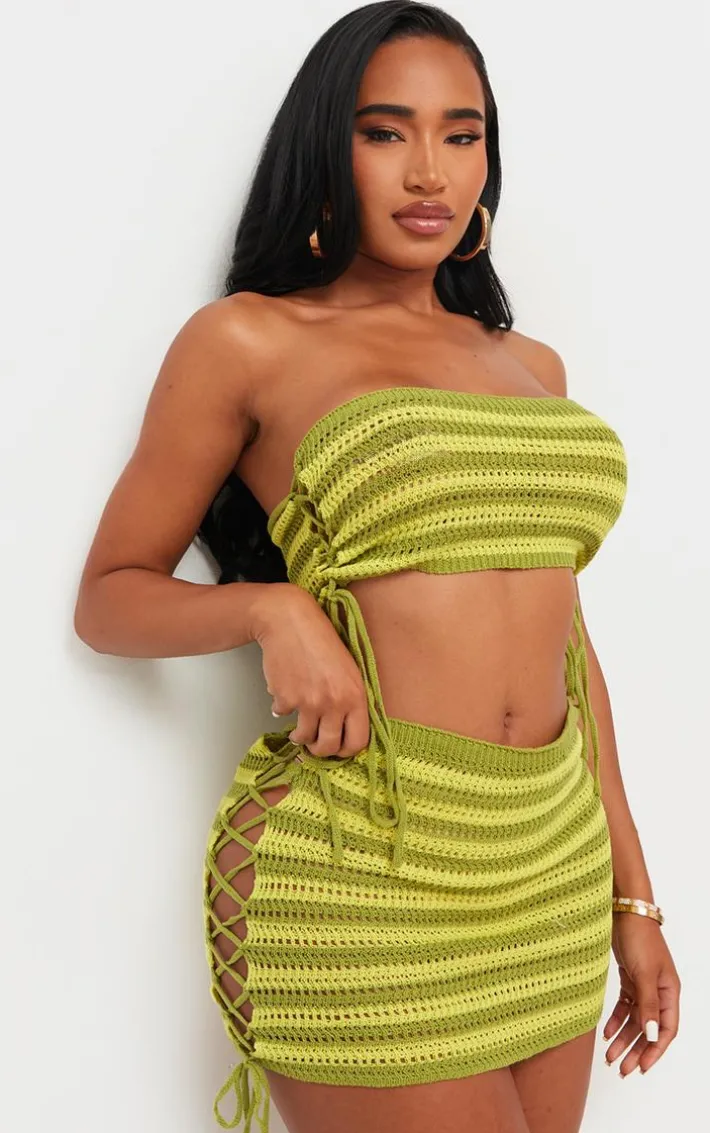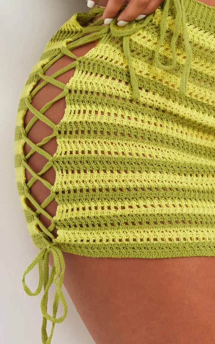 Found some last-minute weekend plans and need an unreal ‘fit? Then we have you covered with this styling staple, a shape green knit contrast lace up micro mini skirt. With a green knit material with a contrasting design, lace detail and a micro mini length, we’re obsessed. Work your styling techniques and add the matching top, high heels and accessories for a weekend-worthy finish that will gain all the likes.